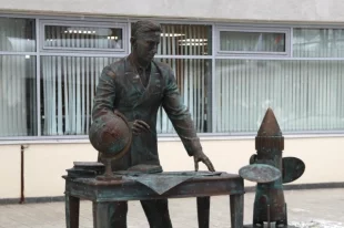Памятник посвящён космонавту и инженеру, приложившего руку к созданию многих кораблей.