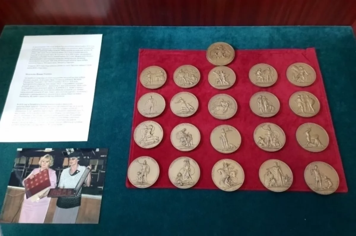 В военно-историческом музее Тарутино Калужской области открылась выставка, посвященная уникальному набору медалей, выпущенному к 200-летию победы в Отечественной войне 1812 года.