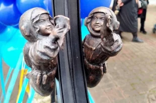Бронзовая девочка протирает зеркало, олицетворяющее собой окно в мир. Установленный вчера космонавтик стал 32-ым по счету.