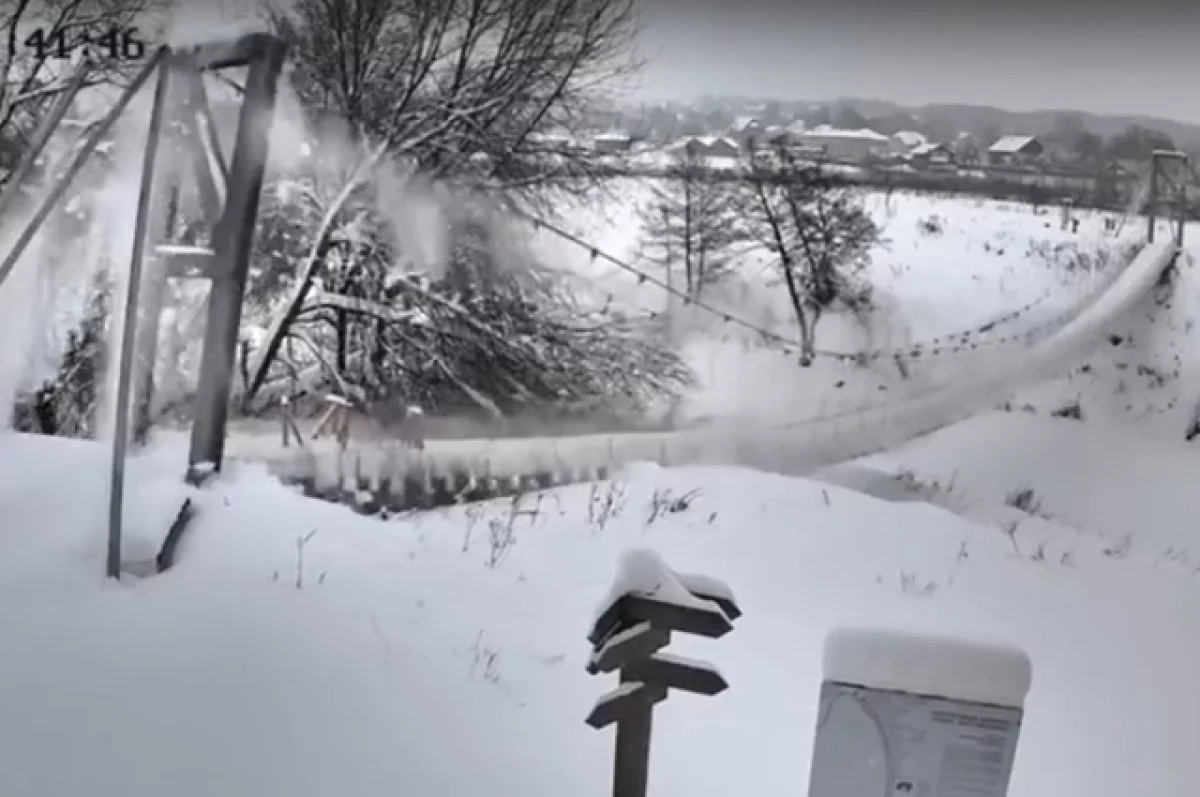 Тарусяне также обратили внимание, что подвесной мост не чистили от снега, поэтому произошли повышенная снеговая нагрузка и прогиб моста.