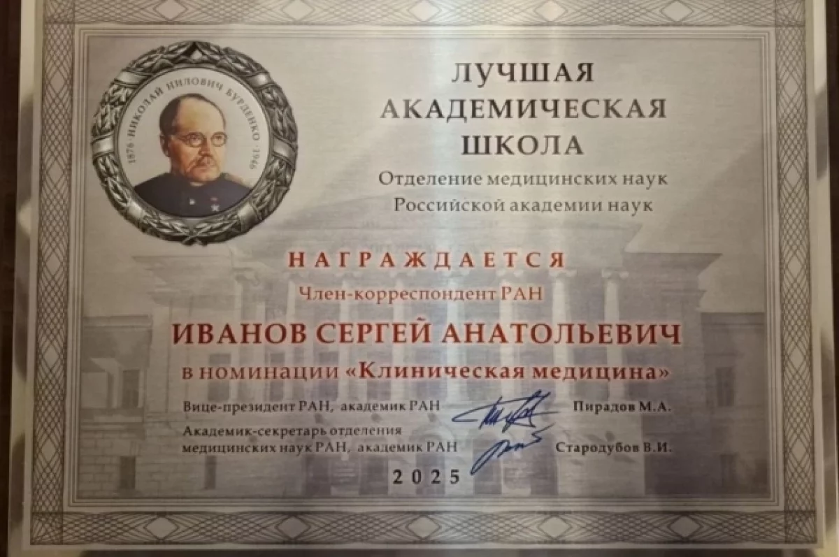 Медаль «Лучшая академическая школа» отделения медицинских наук Российской академии наук в номинации «Клиническая медицина» получил директор МРНЦ им. А.Ф. Цыба Сергей Иванов.