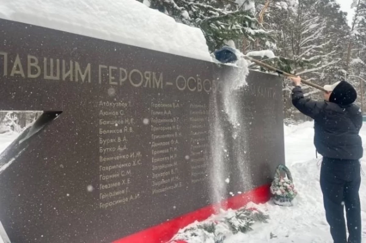 Торжественная часть началась у памятника героям-освободителям Калужской области. Студенты, преподаватели и сотрудники академии возложили цветы, очистили мемориал от снега и почтили павших минутой молчания.