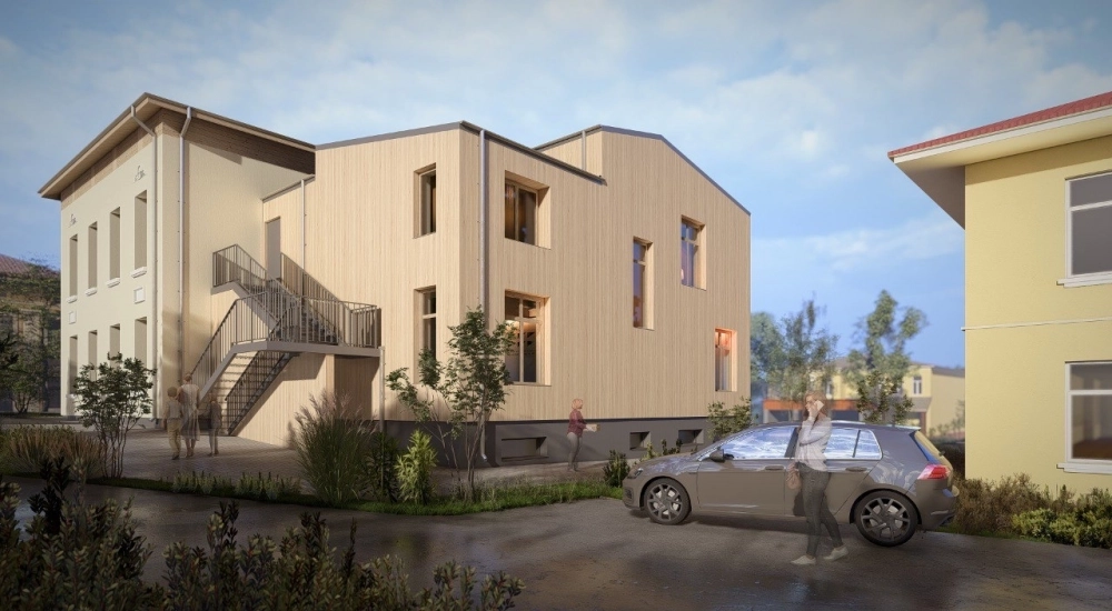 В отличие от не самого уважительного отношения к пространству улицы и её памятникам странно, что большое внимание уделяется в проекте пространству двора, дворовой пристройке к основному, вытянутому вдоль улицы объёму. В проекте есть отсылка к нескольким старинным домам в городе, имеющим деревянные пристройки к дворовым фасадам. Этот факт принят как обоснование проектного решения и даже во многом как его отправная точка. Но что такое эти существующие пристройки? Каково их происхождение? После революции очень многие дома были муниципализированы и отданы под отдельные квартиры. Одни квартиры на первом этаже, другие на втором. Квартирам на втором этаже нужны были отдельные входы, для этого к дворовым стенам пристраивались ведущие на второй этаж наружные лестницы, которые укрывались от непогоды деревянными стенами.
