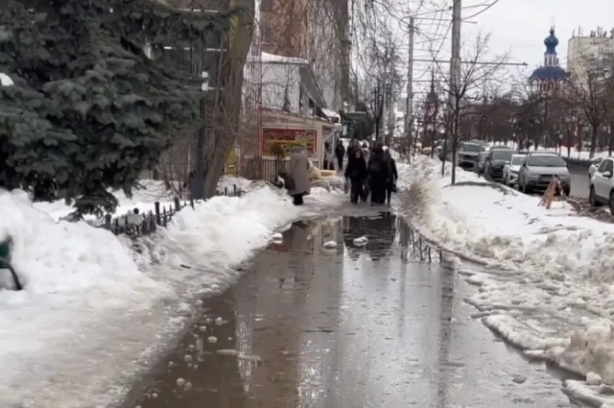 В калужских социальных сетях появилось видео, на котором запечатлена ситуация на улице Кирова, недалёка от памятника секретарю ЦК ВКП(б). Из-за таяния снега тротуар затопило так, что жителям города трудно ходить.