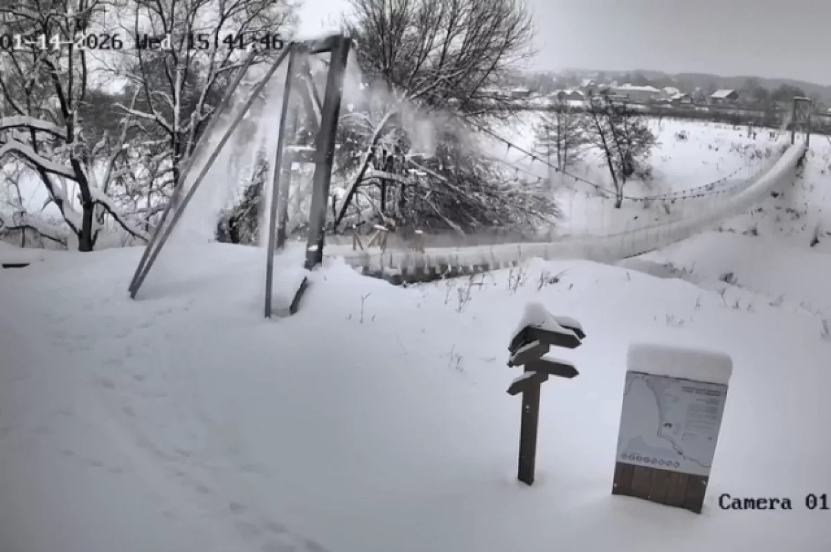 В Тарусе средь бела дня рухнул пешеходный подвесной мост. По счастливому стечению обстоятельств, в момент происшествия на нём никого не было.