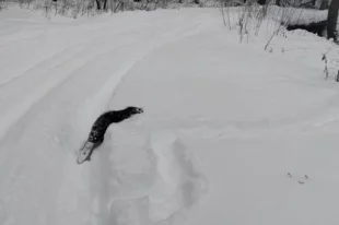 Не смотря на заметённые дороги, лесной житель всё равно вышел по своим делам.