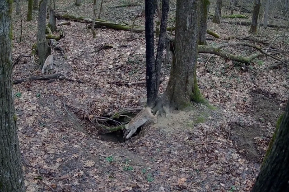 Скрытая камера, установленная на одном из деревьев леса области, засняла семейство рысей прямо у их жилища. Как отметили сотрудники «Калужских засек», в 2024 году рысь с котятами удалось поймать в кадр только у подкормочной площадки зубров.