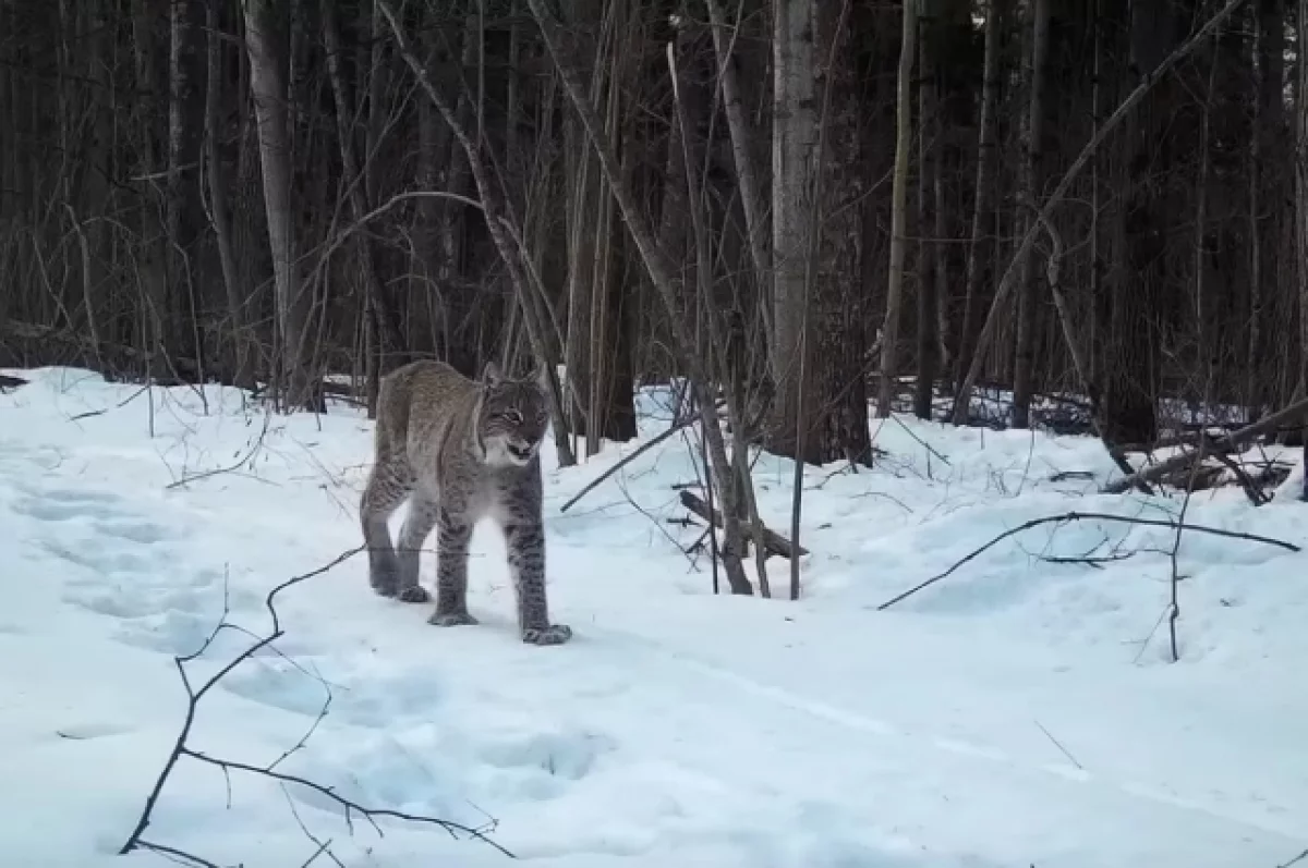 Спустя долгое время в «калужских засеках» показали калужанам одного из жителей глухих лесов региона – рысь. Запись сделана в марте, когда снег в лесах ещё не растаял.