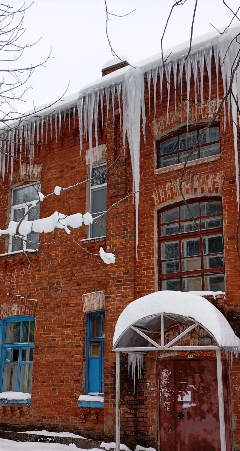 Как и прошлые зимы, на крышах домов вновь образовались сосульки. Местами глыбы льда почти достают до козырьков входных дверей.