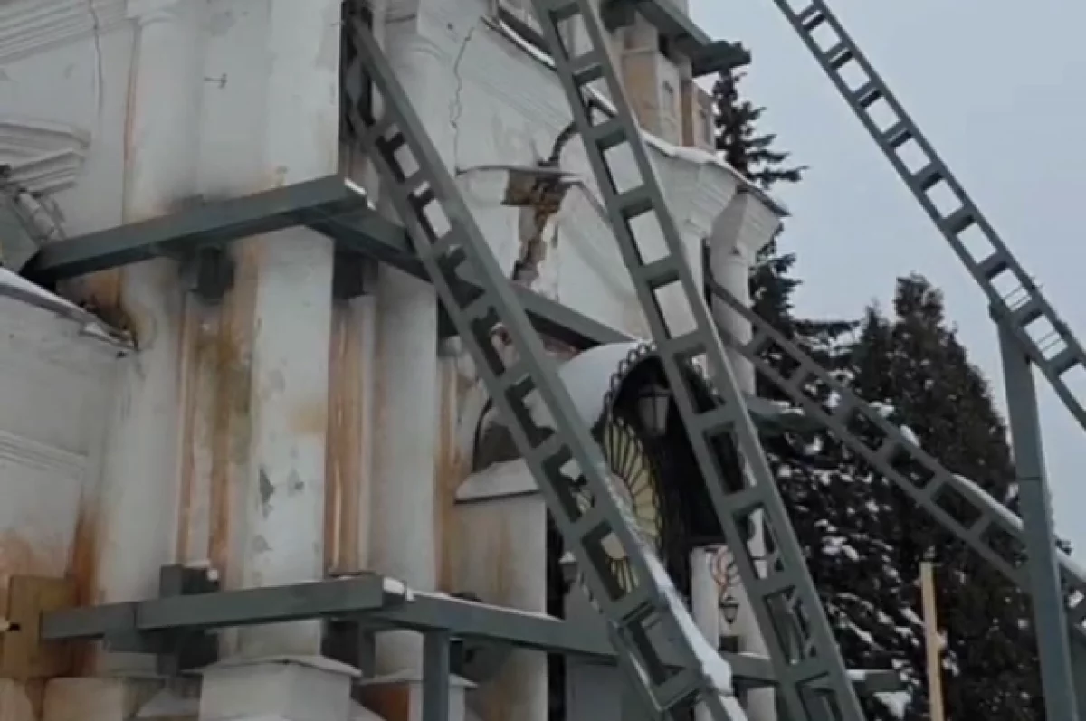 На данный момент реставраторы закончили только первый этап противоаварийных работ. Специалисты усилили фундамент и установили вокруг колокольни стальные контрфорсы, которые временно удерживают конструкцию от обрушения.