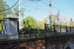Упавшее дерево сломало ограждения Каменного моста в Калуге.