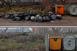 Рядом с мусорными контейнерами в областном центре кто-то оставил мешки с отходами животного происхождения.